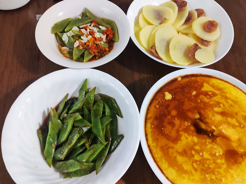 我妈拿手的鸡血汤 为了这点鸡血 活鸡买回家自己杀鸡血凝固了下锅 口感带点脆鸡肠也是一点点洗干净冬笋也是我妈的最爱,炒咸菜炒韭芽炒青椒,百搭