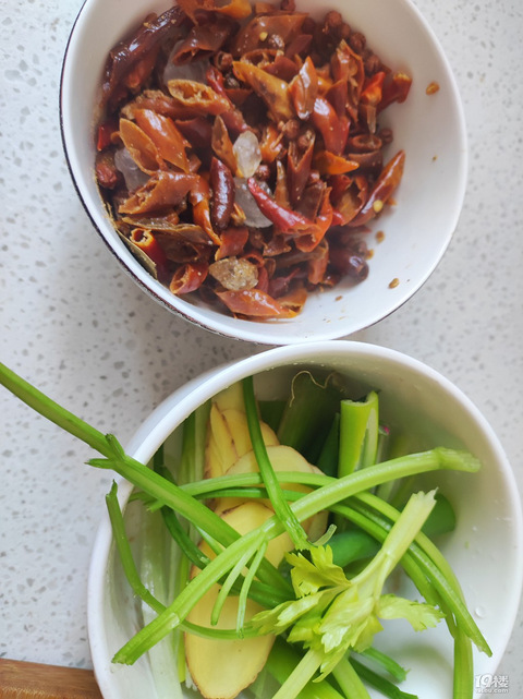 冷吃牛肉 第一次尝试干辣椒,用剪刀剪开,辣椒籽不要。再加点花椒,用热水泡一泡。大葱,蒜,姜,芹菜,炸香料油。牛肉大块煮熟,切条。这点我做的不好,没煮透。香料油炸牛肉条,差不多了把辣椒花椒倒进去,放冰糖。 味道还可以,下次还是买着吃了,做多了容易吃腻。