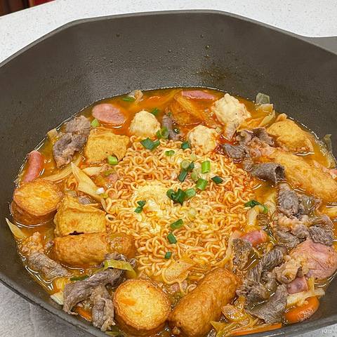 突发奇想的在家里试试 做部队锅用韩国辣酱和六婆辣椒粉搅拌均匀,用油炒一下喜欢大蒜的可以放点蒜末,然后加开水,把自己喜欢吃的食材丢下去煮开就好咯我还放了两片芝士,可以说完胜外面的部队锅呀烤冷面也巨简单,买来会配酱汁的,先把配菜炒熟放烤冷面,我喜欢把它切碎,然后倒入酱汁,焖熟就好啦