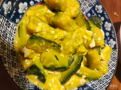 不起油锅,青南瓜切块,水油焖煮。煮到半熟,把熟咸鸭蛋弄碎,放进去同煮。汁水收干即可。卖相一塌糊涂,吃起来很香呢。咸鸭蛋已经很咸,这道菜不需要额外加盐。