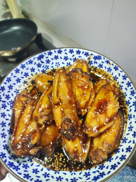 不格额外放油版本,百事可乐鸡翅。肯德基全家桶,搞活动54元。可乐三杯,喝不完,别浪费,做菜用掉。我本人不爱给鸡翅划花刀,我喜欢完整的皮,相对的就不入味,要皮肉一起啃。不粘锅,鸡翅擦干水分翻面煎。八角香叶葱节生抽可乐一起煮,出香味的再把鸡翅放进去,大火收汁。,撒点芝麻。