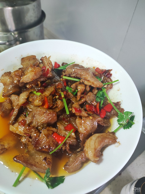 吃辣能力一般,放的是美人椒。瘦肉单独腌制,放老抽,生抽,胡椒粉,淀粉。 锅里先炒肥肉片,煸出油,把剁椒,美人椒碎,蒜碎倒进去翻炒,最后放瘦肉片翻炒。关火后,放点香菜,这样好看。本人能接受香菜的香气,直接吃受不了。