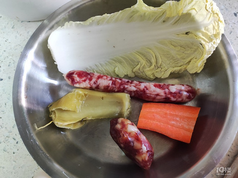 鸡蛋,腊肠,娃娃菜,酸菜,胡萝卜。个人喜好,我喜欢放酸菜,这样就不放盐也不放生抽。饭用昨天的剩饭,电饭锅盛出来微波炉打一下,这样米粒容易分离。油炒鸡蛋,鸡蛋成型,放胡萝卜酸菜碎,翻炒几下,放腊肠和白菜碎。最后放米饭。主要,要买到好吃的广式腊肠。