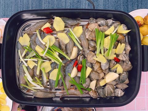 我也来秀厨艺了!强烈推荐大家买一个摩飞锅,自己在家烤肉、煮火锅、蒸海鲜…都可以! 分享一下之前的一次蒸海鲜,把各种海鲜洗干净,切点葱姜椒,开锅上蒸!15分钟后就是一盘海鲜大餐啦,还可以在下面放上米和水,海鲜吃完还能喝个海鲜粥~