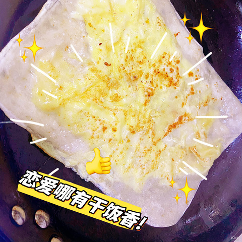 今天早上用吐司面包片做的早餐松脆可口料足味美,还挺好吃的!吐司中间挖空放入鸡蛋煎一下,加入青椒碎和熟的奥尔良鸡肉,放平底锅煎至面包底部焦香
