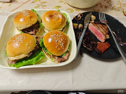 我爸还是有点手艺在的,不亏是南湖区大桥镇第一大厨~这个汉堡和牛排,我感觉比我在店里吃的还要好吃,哈哈哈关键是量也足,我觉得可以出去开店了,欢迎大家来捧场,哈哈哈哈哈哈哈哈哈~