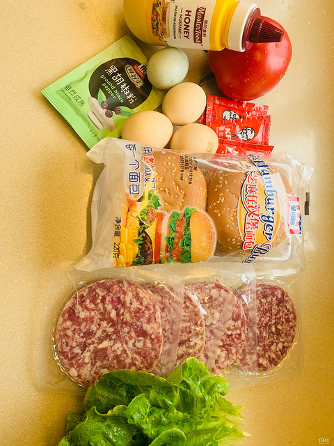 牛肉汉堡自己做起来,配上好吃的蜂蜜芥末酱、沙拉酱完美,当然喜欢吃辣酱的也可以再加点儿番茄片加进去很清爽,甜美,关键食材还是在于牛肉饼好