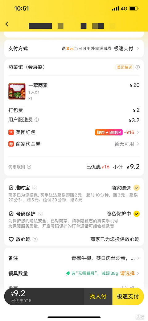 太香了!!美团最近在送钱啊!9块2吃一顿一荤两素
