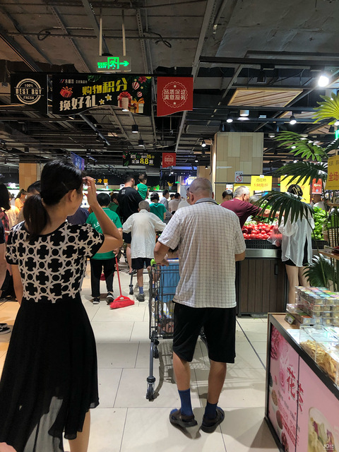 话不多说,大家看图 肉类非常便宜,买的都是大妈大爷,看到榴莲价格是在大大的惊喜,赶紧买了一个,坐等开奖。海鲜区的价格相对大润发便宜很多,也可能刚开业吧。水果区看到一位大哥抱着至少50几斤的大西瓜,妥妥的鹤立鸡群的水果王。近期需要囤货的小伙伴可以去瞧一瞧看一看
