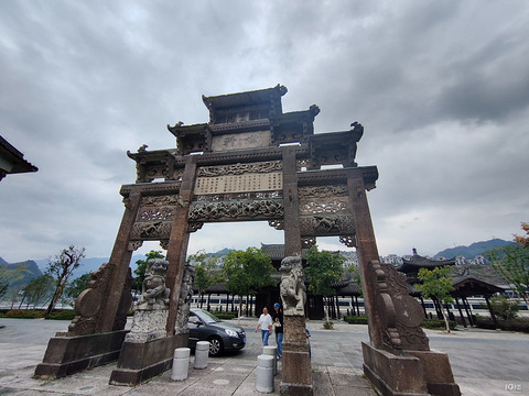 十一回嘉兴时路过景宁,听亲戚说这里的畲族凤凰古镇蛮有特色,故带娃过去小转了一圈。 景宁比我想象中的要大,是名副其实的青山绿水。我们所到的是还在开发中的凤凰古镇后段,前段是比较成熟,游人还是比较多的。个人感觉就是新建翻旧,像牌坊之类还是有点年头,但许多古楼是新造仿建的。目前应该还在招商中吧。 古镇边有一条宽大的江河(我没去查,不知这江为何名),对岸建着一幢幢别墅。这江河就像一个隔空器,一边是现代小伙