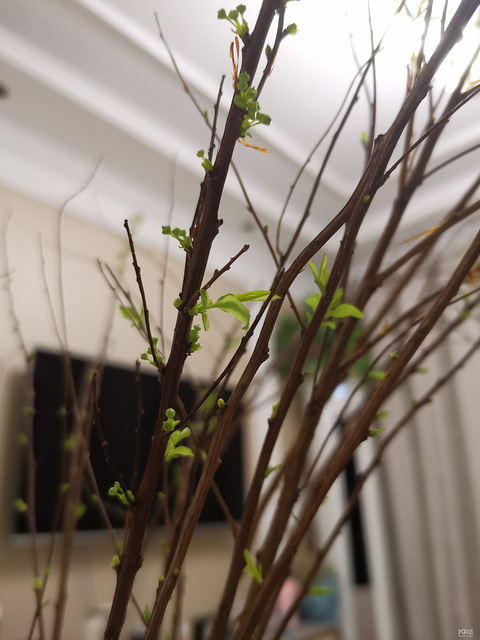 养雪柳真的是一场修行吧~刚买来的就是就是一把枯枝,差点被室友当垃圾扔掉[/11捂脸]坚持每天喷水,一个月才刚发一点点芽,最近开空调可能温度上来了,慢慢的越开越大,终于有机会亲眼见证了枯木逢春![/11泪崩][/11泪崩]期待它开花![/11害羞][/11害羞]
