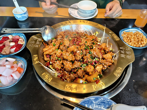 抖音刷到的烧鸡公冲了,实惠量大,是真的挺不错,2个人根本吃不完!点一碗蛋炒饭配着简直绝了!泡菜解腻,还有鸡杂也会给你,百元以下解决一顿饭,性价比很高!