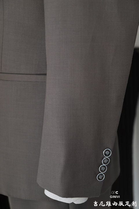 当晨光吻过枪驳领的锐利线条灰色暗纹在西装表面泛起涟漪这是专为「一生一次的高光时刻」定制的仪式感—— 【枪驳领的锋芒美学】60度上扬的领尖划破平庸金属光泽的领针暗藏骑士勋章般的庄重每个转身都留下优雅的几何投影 【双排扣的复古宣言】六粒鎏金纽扣串联起维多利亚时代的矜贵修身剪裁勾勒出挺拔如松的轮廓在拥抱新娘的瞬间让温莎结自然垂落在立体胸衬之上 【条纹灰的高级叙事】远看是月光流淌的静谧近观有千缕银丝编织的
