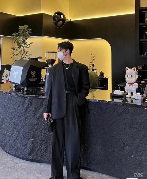 今日是休闲韩系西服套装上身的一天西服上身有型不会松垮 日常感非常nice同色系西裤版型宽松面料柔软舒适是男生衣柜里不可缺少的一件套装单品
