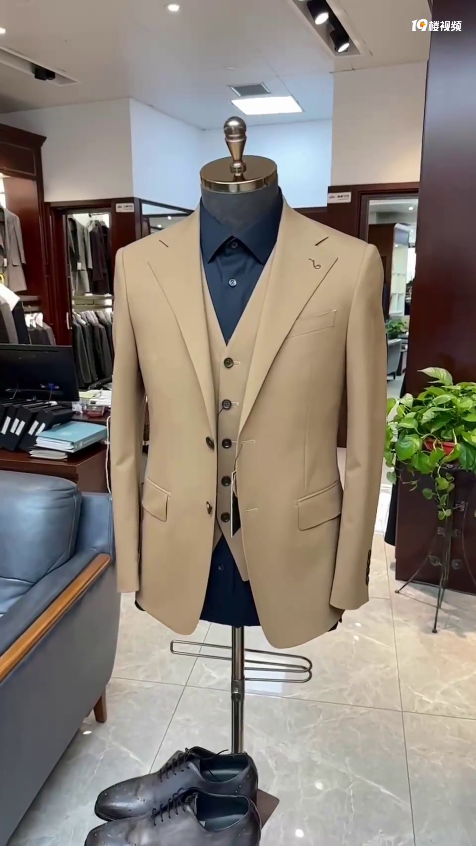 卡其给人感觉干净优雅不失个性,穿三件套可搭配暖色领带。敬酒时穿同色系马甲可以体现出满满的仪式感日常穿搭可配休闲衬衫或者休闲裤,这样呢可以更好贴切日常生活……