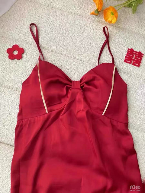 衣服真的买到心坎上了,是我想要的款,衣服高级感满满,当时买来结婚穿的,颜色很正也喜庆,衣服穿在身上有点小性感而不失优雅,太赞了,晨袍里面还带有胸垫,真的很nice~衣服质量也没得说,面料滑滑的很舒服,下水洗了也没有褪色的情况