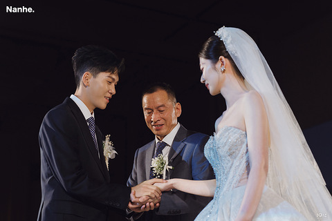 黑色塔士多的线条藏着不动声色的仪式感,领口的缎面光感刚好接住这场婚礼的浪漫穿得正式些,是为了配得上此刻的郑重——见证爱被许诺成永恒,比任何场合都值得盛装出席