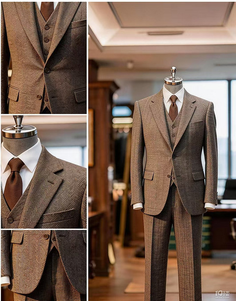 这件粗花呢西装,让新郎在婚纱照里赢麻了焦糖色混纺肌理自带滤镜感,拍婚纱照时不管是暖光棚拍还是户外草坪,都能拍出浓郁的复古氛围,完全区别于千篇一律的黑 / 藏青西装,高级感直接拉满。 版型 质感亮点粗花呢面料自带颗粒感,摸起来软糯又挺括,秋冬婚礼穿保暖又有腔调平驳领 + 单排扣设计,弱化正式感,更显随性优雅,微胖 / 清瘦身形都能驾驭三件套结构,仪式感拉满,接亲 / 仪式 / 敬酒全场景适配 备