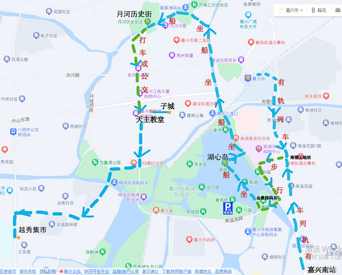 适合外地游客第一次来,或者亲戚朋友来嘉兴玩带他们游遍嘉兴[/11龇牙]。1.外地游客到达嘉兴站或者嘉兴南站,坐有轨电车到南湖天地下; 2.外地自驾游客,导航到嘉兴勺园,有很多停车位; 3.南湖天地逛一下,步行到会景园码头,购买36元联票坐船,湖心岛-南湖天地-月河; 4.坐船先到湖心岛,预计逛1小时,然后坐船到南湖天地,再坐船到月河; 5.逛月河,有美食+花鸟市场,预计逛2小时; 6.打的到天主