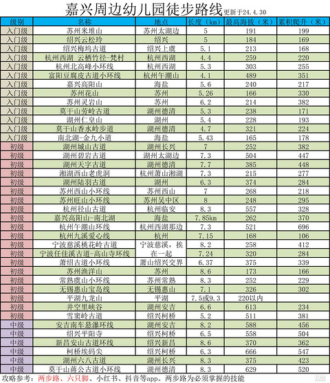 按照幼儿园小班的体能,分了入门级、初级、中级。大多数是5-7公里的路线,主要分布于苏州、杭州、湖州和绍兴。因为离得近,当天来回方便[/11偷笑]。顺便简单介绍一下两步路app的使用方法:搜索徒步路线名,点击“更多轨迹”选中一个路线后,点击进入,点击“未下载”已下载地图后,点击右下角红框里按钮点击,叠加到地图 点击左下角小人图标选择徒步或者爬山,有山的选爬山就行然后就开始记录了。怎么看两步路数据:查