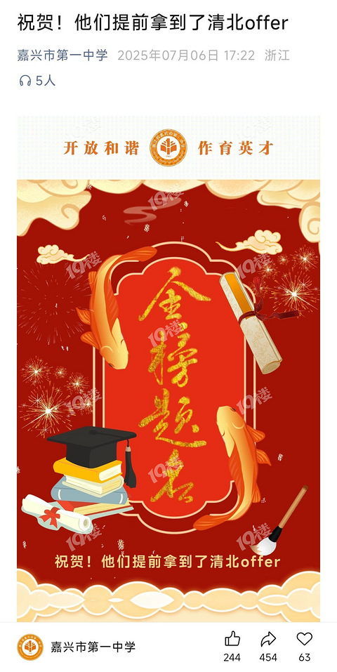 3人提前拿到清北offer!一中真的好久没这么硬气了!