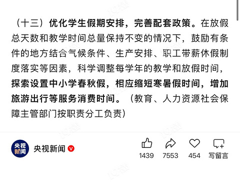 官方这算是明确了,总量不变,腾出来一些日子挪给春秋假[/11捂脸] (消息来源:扩大服务消费!9部门发文)