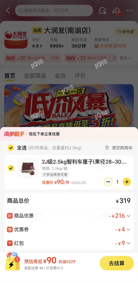 今年是车厘子大年吗?感觉各个平台价格都还挺便宜的。美团上大润发超市2J5斤券后是90(小红书上很多人券多可以达到80),今早山姆的3J5斤也上线了,158感觉也还好~ 你们今年买到的最好价的车厘子是啥价格!