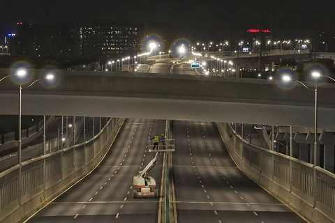 快速路桐乡射线,又有新进展! 昨晚11时,桐乡大道与嘉杭路交叉路口的嘉兴市区快速路桐乡大道射线工程(中环西路-三环西路)施工现场,2名工人正在高架路面上进行焊接施工。黑色的夜幕中,暖色的路灯下,焊机接连冒出点点火星,打破了封闭路段内原有的宁静。 “这是我们最后一次对跨内环高架部分进行通宵封道,每天晚上十点封道,十点半开始作业,第二天早上四点半结束作业,五点前解封。”中铁十六局集团有限公司安监部副部