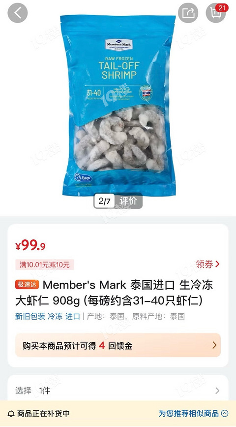 山姆辟谣:冷冻大虾仁不使用保水剂!!!