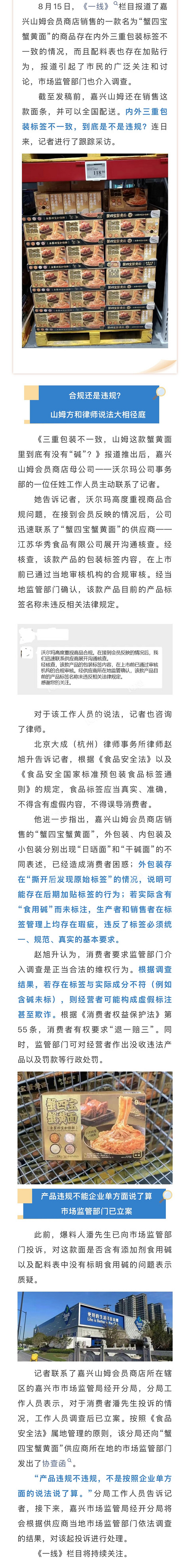 嘉兴山姆涉事蟹黄面仍在销售,监管部门已立案!