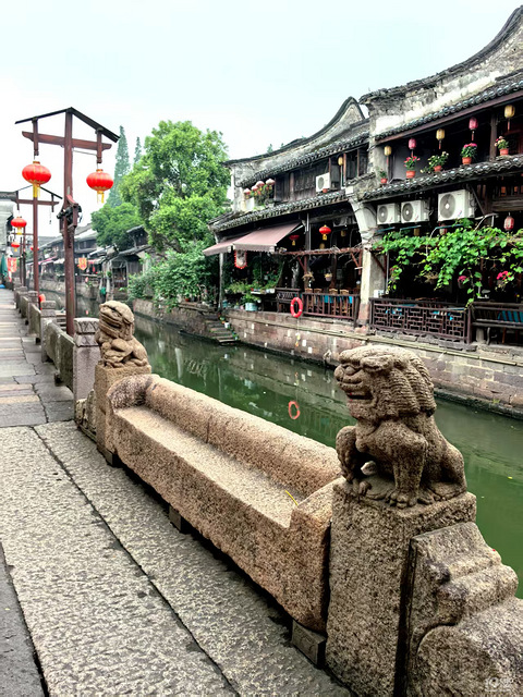 二宝皮是出名的,原本皮实是在眼里的,但有时候却是意外。 不久带二宝去逛了一下新市古镇。地方不大,早上人不多,所以也全当是散步。 江南小镇,大同小异。依水建长廊,几步一石埠。问题就出在这石埠头上。我们慢慢悠悠随处看,随手拍几张照片。二宝跑来跑去,可能太闲了,看到河水中有小鱼,便问我可以走下石埠头看看么,我想自己在边上看看也无事。只是没想到转个头的功夫,就听得“哗啦”一声!!!回头看,二宝整个人都滑坐