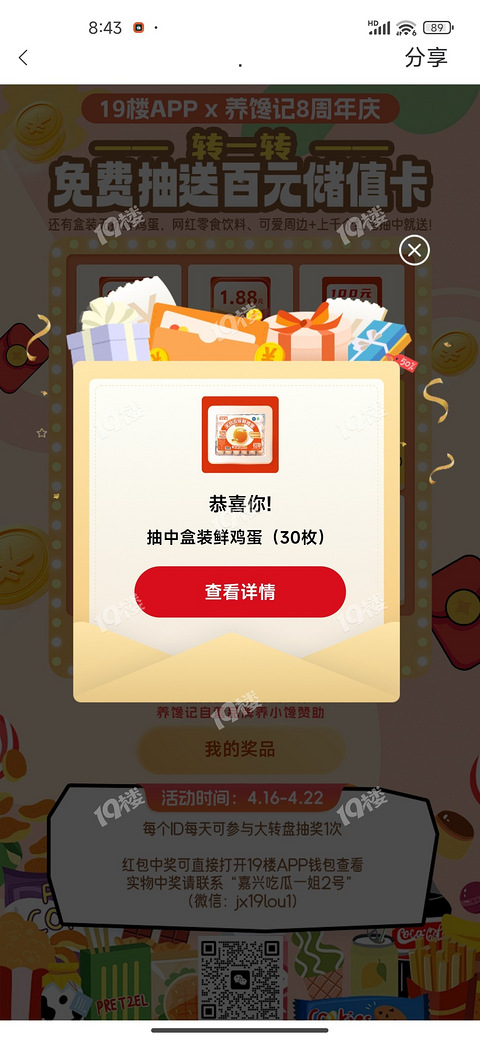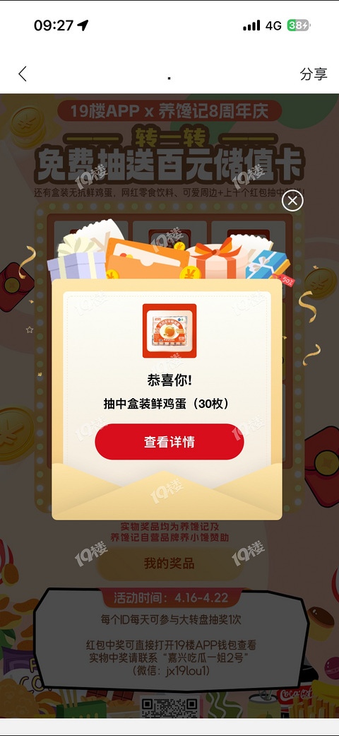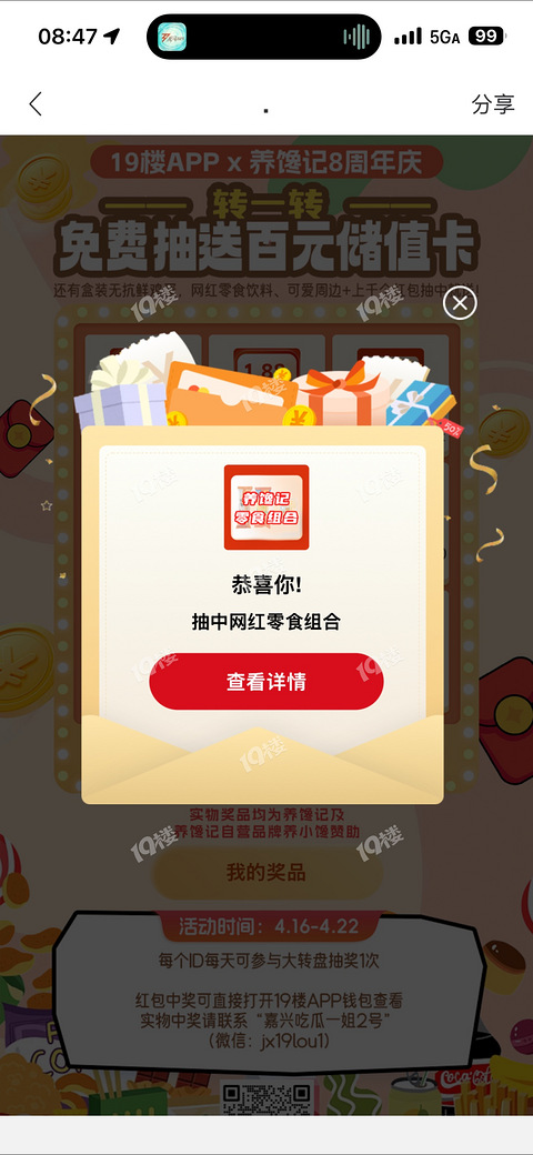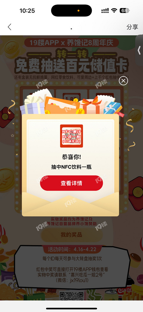 抱着试一试的心态抽奖的,居然欧皇附体了。感谢19楼的外卖免单[/11鼓掌][/11鼓掌][/11鼓掌]。中奖后添加19楼工作人员(嘉兴吃瓜一姐)核实下,奖励发放很快的,给她点赞