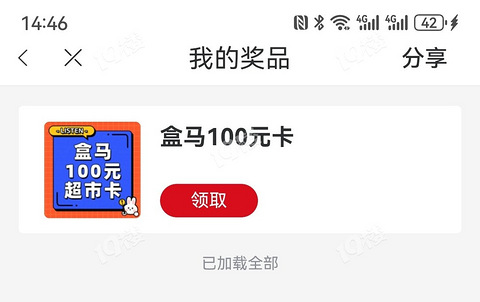 哈哈,抽中了盒马100元卡,本命年,我要时来运转了,嘻嘻!