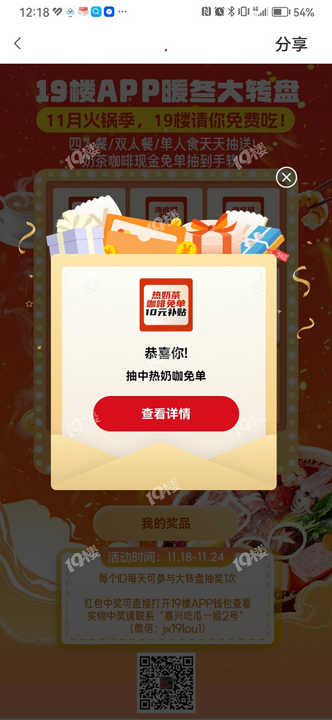 抱着试一试的心态抽奖的,居然欧皇附体了。感谢19楼的外卖免单[/11鼓掌][/11鼓掌][/11鼓掌]。中奖后添加19楼工作人员(嘉兴吃瓜一姐)核实下,奖励发放很快的,给她点赞