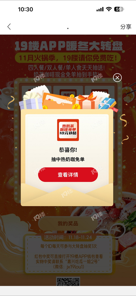 大转盘中了10元下午茶