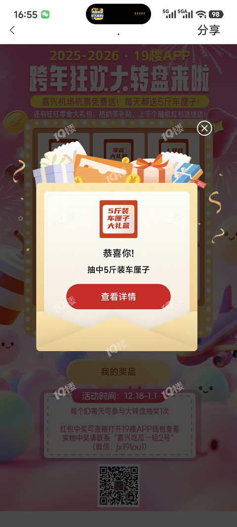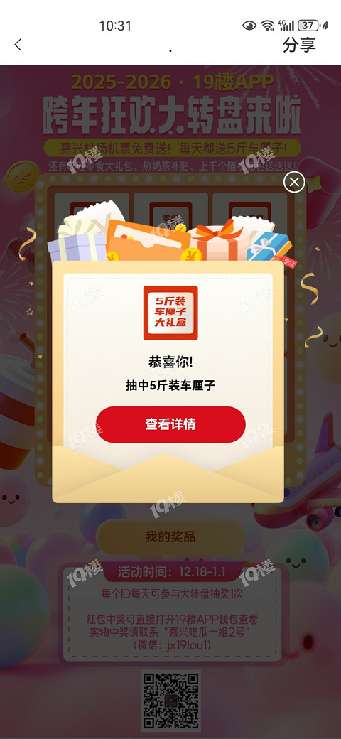 我在19楼大转盘中大奖了,欧气满满了!