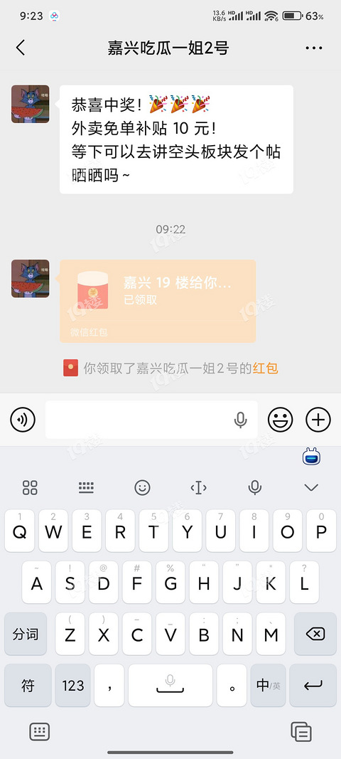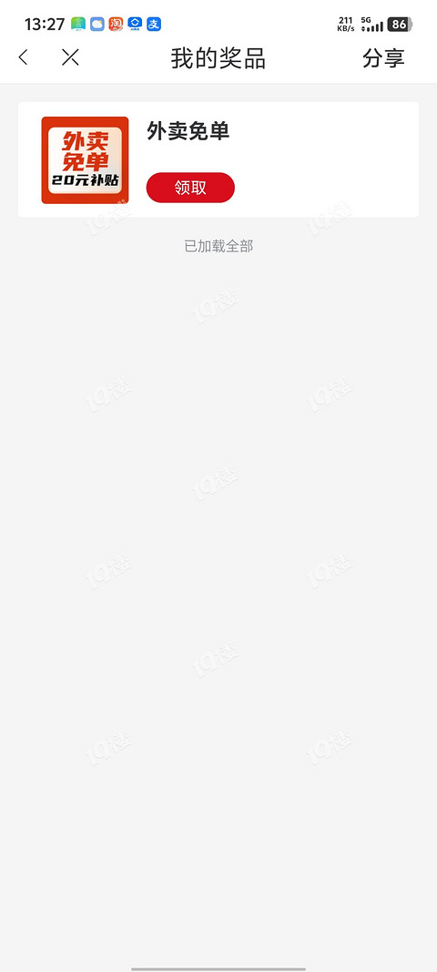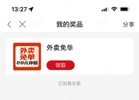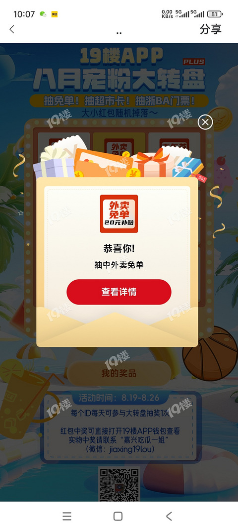 抽了好几天总算中奖了感谢19楼的外卖补贴