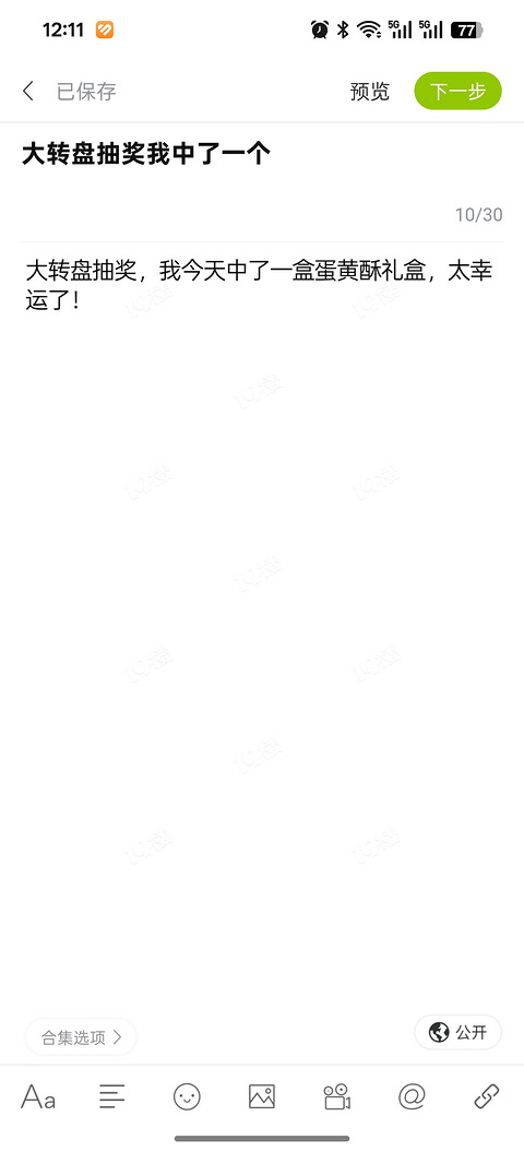 今天我在大转盘抽奖中,中了一盒蛋黄酥礼盒,太幸运了