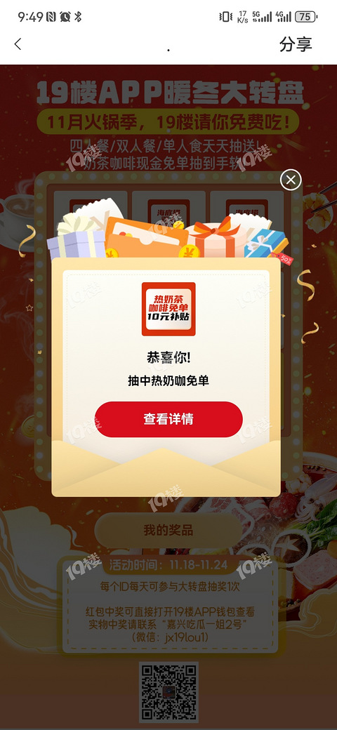 大转盘抽奖也终于轮到我了,免费下午茶一份