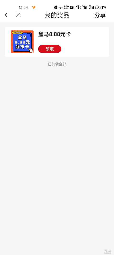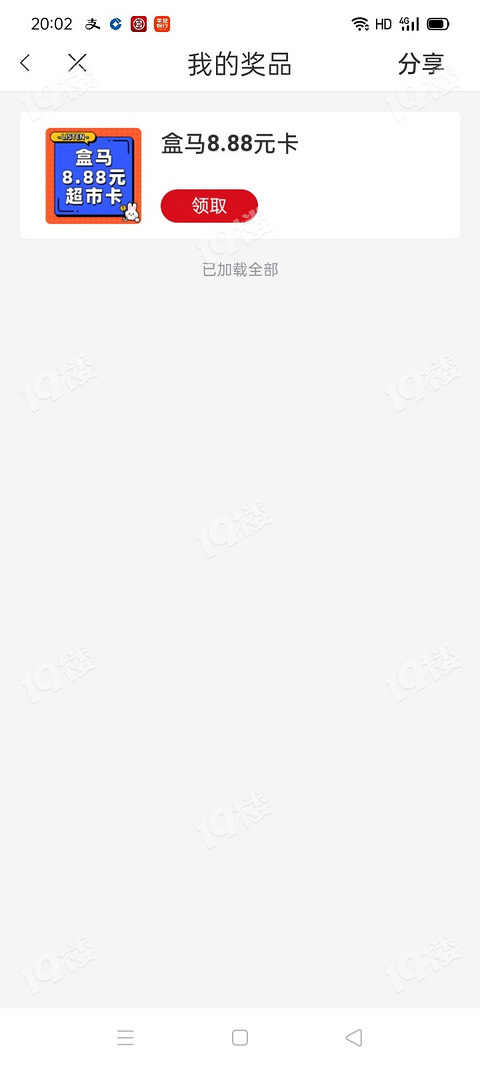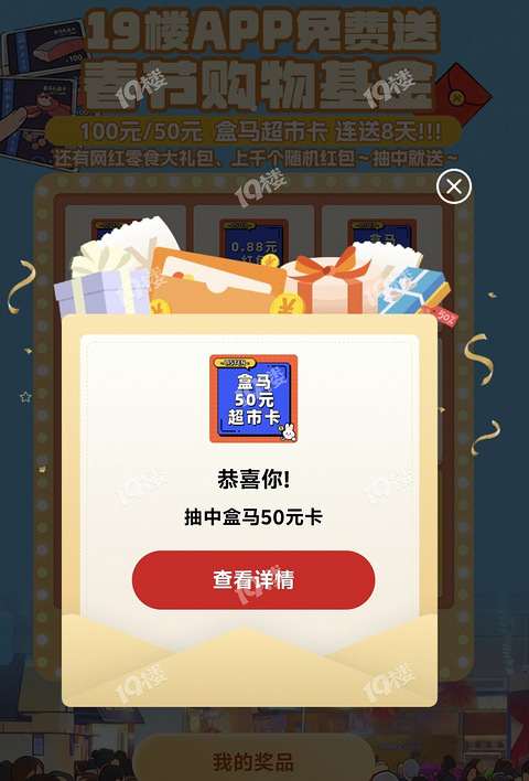 19楼大转盘中了盒马卡