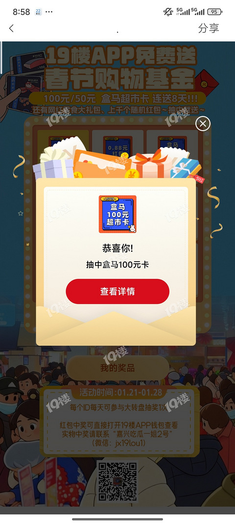哈哈哈!领到8月在19楼大转盘抽中的超市卡了
