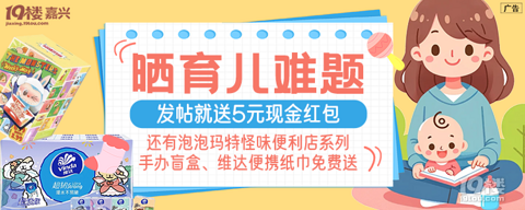 养娃的过程是不易的总会遇到一些令人惆怅的经历晒育儿难题 发帖就送5元现金红包 还有泡泡玛特怪味便利店系列手办盲盒、维达便携纸巾免费送 【参与方式】标题格式:【育儿难题】+标题帖子内容要求说明:文字100字以上+2张图片及以上(帖子不能太水,须符合定位,发过的内容不能重复发) #活动奖品#【人人有奖】5元现金红包1个发帖后需要找嘉兴妈妈(jxmam10)领取红包哦,一个ID一个红包(当月发帖需当月