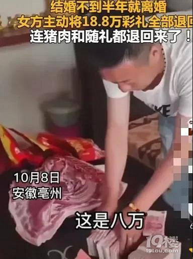 结婚不到半年离婚,女子主动退18.8万彩礼,连猪肉和随礼都退回了