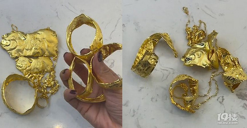 女子晒结婚时金首饰,徒手捏瘪4镯子直呼解压