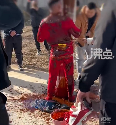 安徽宿州。一新郎身穿红色秋衣秋裤被朋友们用胶带绑在电线杆上,身上被泼满酱油豆瓣酱等混合液体。视频拍摄者称,称当天最低温度零下7度,感觉还是挺冷的,绑了十几分钟,当时觉得不太可能泼