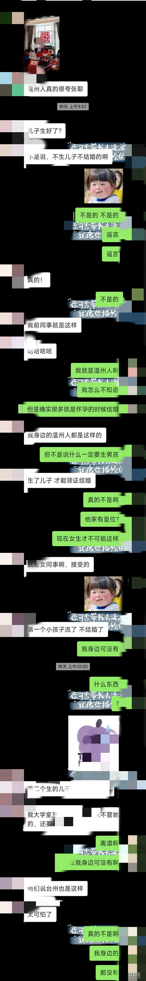 同事对于温州婚假的认知 我真的感觉离谱啊!什么叫不生儿子就不能结婚啊 有皇位吗?现在有女生会同意这种离谱的条件吗?九年义务教育还没有普及吗?现在动不动就说。打女拳这种情况的女拳?离谱