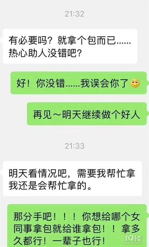 来自网友投稿:是这样的!男朋友公司组织旅游公司不大,也就十几个人吧。其中女生有好几个吧。今天看他发的朋友圈晒图,早上的晒图和晚上的晒图都看见他拿了一个女生的包,我就炸了!我就问他为什么帮别的女生拿包?还拿了一天??男朋友说就拿一下包而已......也没做啥出格的事......我也是服了......我说反话,让他明天继续给别的女生拿包,他说看情况,需要他帮忙他就帮忙拿......然后,我就提了分手