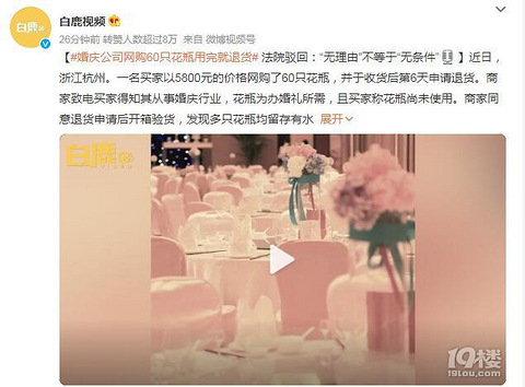 婚庆公司网购60只花瓶,用完申请“七天无理由退货”被拒