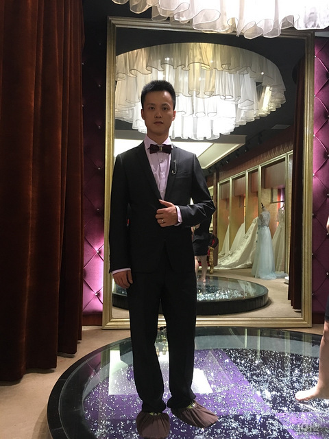 老公当时去试的西服,后面定的忘记是不是这一套了,哈哈,我自己拍的照跟摄影师拍的差别还是很大啊[ej=1F604]最后来张整体的,哈哈,现在看看还是觉得幸福满满