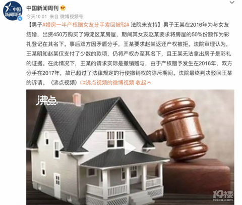 男子婚房一半产权赠女友分手索回被驳:不要高估你们的爱情和人性